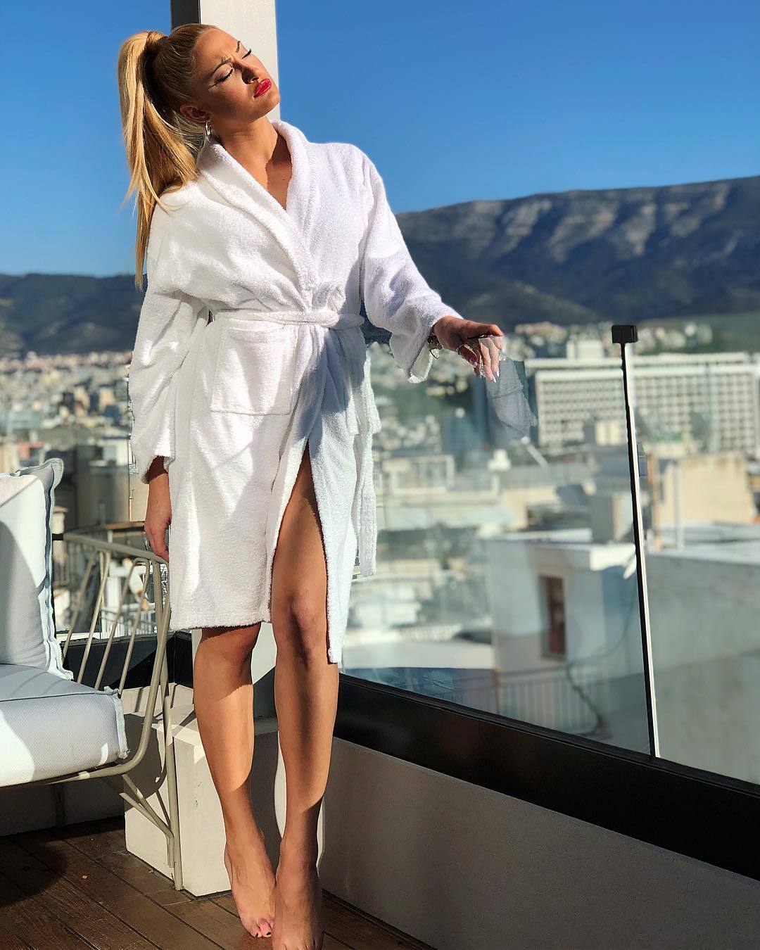 Bio: Albanian-born actress Ioanna Touni, renowned for her captivating performances in recent indie films, confidently showcases her striking feet—size 11.5 US—in this exclusive gallery celebrating her unique beauty and rising star status.