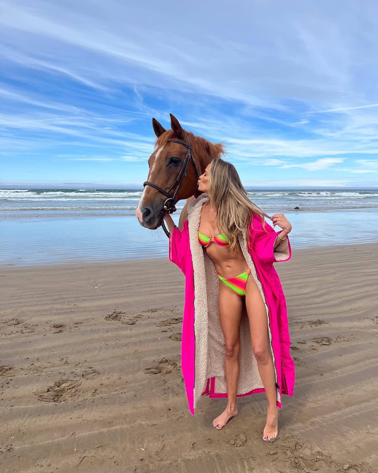 Bio: Jena Sims, the talented actress and model known for her roles in "Sharknado" and her vibrant passion for philanthropy, shows off her stunning US size 8.5 feet—adding a captivating glimpse into her glamorous life beyond the screen.